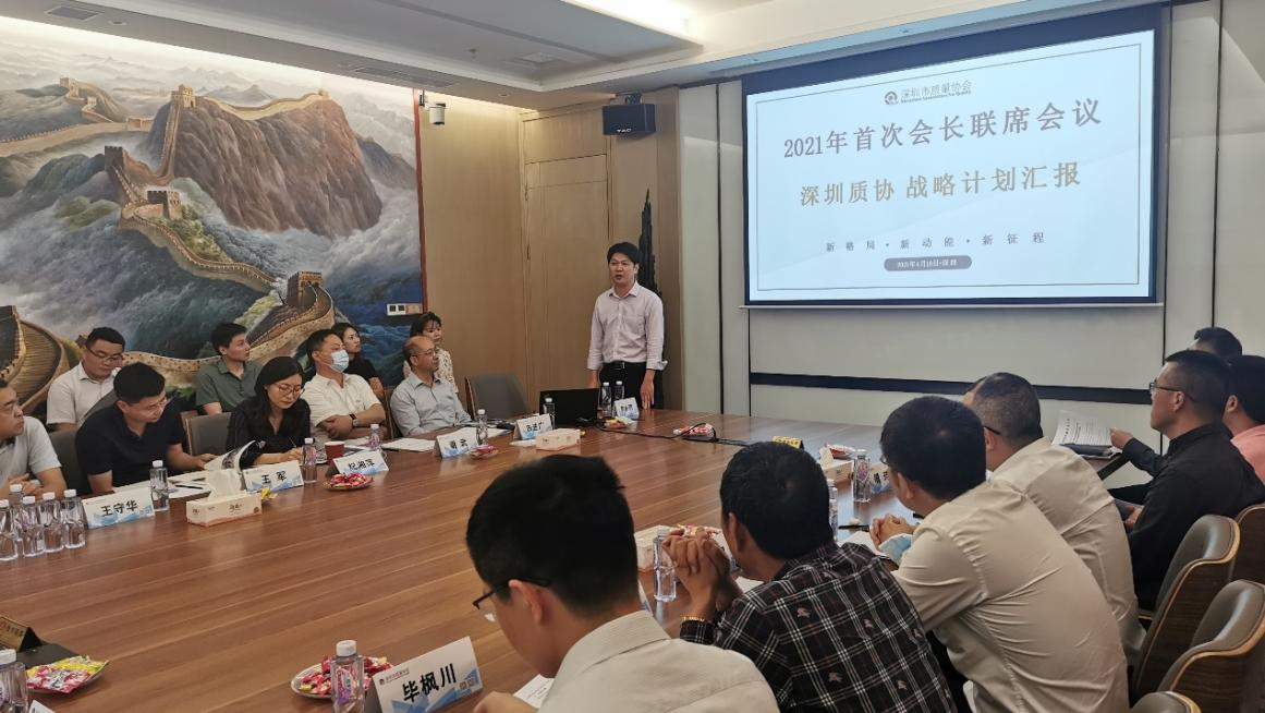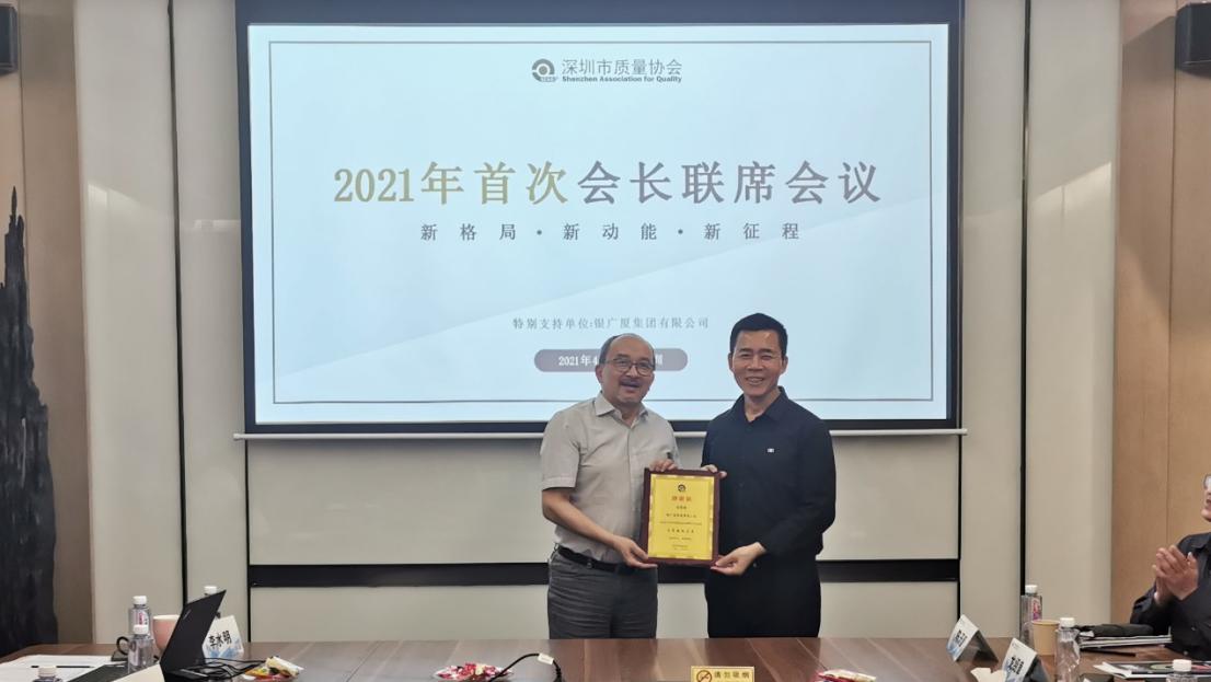 見圳客戶端·深圳新聞網2021年4月22日訊 近日,深圳市質量協會2021年首次會長聯席會議在市質協副會長單位銀廣廈集團有限公司成功舉辦。深圳市人民政府原副市長陳彪,原廣東省政府參事、原深圳出入境檢驗檢疫局局長、市決咨委——市先行示范區(qū)專家劉勝利,深圳市質量協會會長、深圳航盛電子有限公司董事長楊洪以及各在深副會長出席了本次會議。