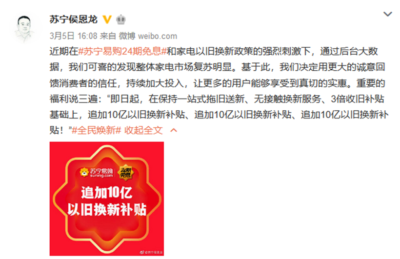 自2月10日聯(lián)合各大家電品牌推出“開倉計劃”以來,蘇寧315“全民煥新節(jié)”不斷往消費市場注入強心劑。