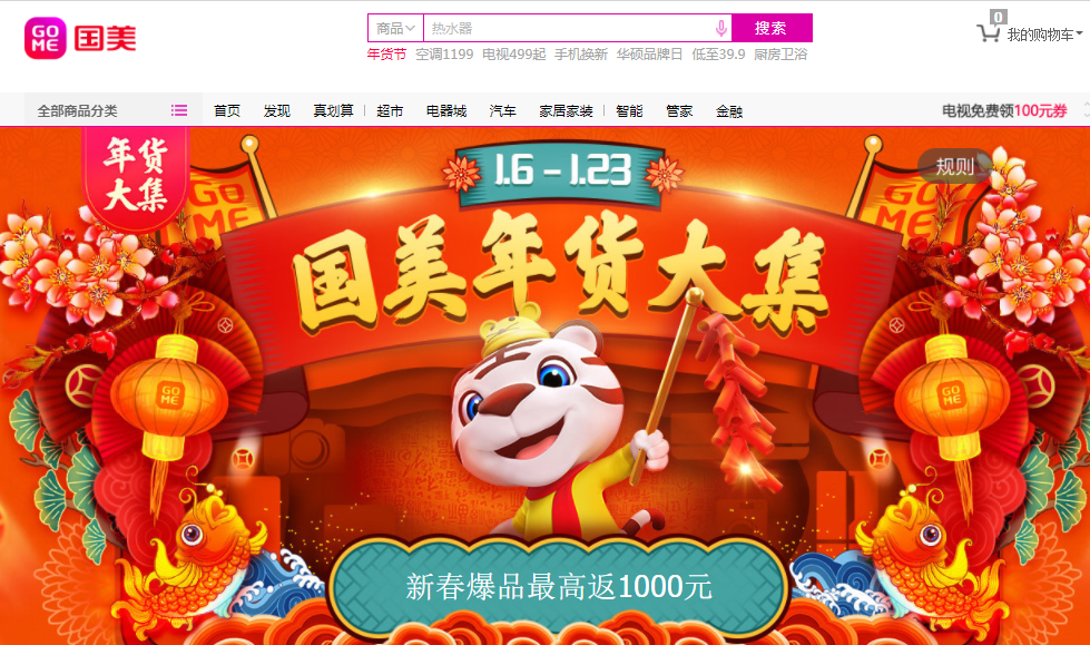 1月6日-23日,國美年貨節(jié)廚房衛(wèi)浴精品助你在除夕夜游刃有余,把你的愛傳遞給家人。