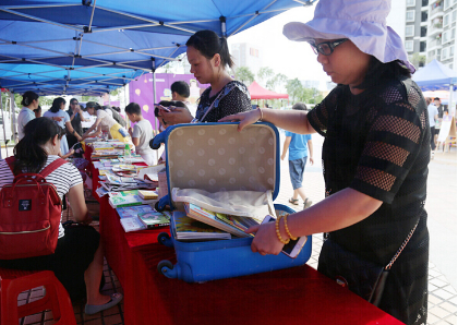 6月18日,深圳新聞網(wǎng)攜手中國光大銀行深圳分行,聯(lián)合舉辦了一場“行李箱捐換書籍”公益活動,數(shù)百名小朋友及家長拖著大小不一的行李箱來到現(xiàn)場,不僅換到了喜歡的讀物,還捐出自己的藏書,在分享讀書之樂的同時,將愛心傳遞下去。