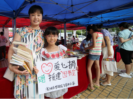 深圳市錦田小學(xué)的部分學(xué)生家長(zhǎng)組團(tuán)從羅湖趕至活動(dòng)現(xiàn)場(chǎng),他們帶來(lái)了200余本書(shū),剛一擺出來(lái),展區(qū)前就圍滿(mǎn)了人?!霸诹私獾竭@次愛(ài)心捐書(shū)活動(dòng)后,我們特意從學(xué)生捐獻(xiàn)的書(shū)籍中精心挑選出200余本帶到現(xiàn)場(chǎng)。捐書(shū)活動(dòng)與我們的教學(xué)理念很契合,我們?cè)敢庾尯⒆臃e極參與,在他們幼小的心靈播下愛(ài)的種子,在成長(zhǎng)的道路上時(shí)刻不忘幫助他人?!卞\田小學(xué)劉向陽(yáng)副校長(zhǎng)告訴記者。