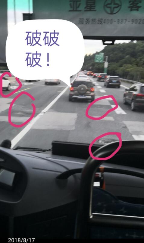 市民syh19667288于6月17日在深圳論壇發(fā)帖《梅觀高速,你的路面質(zhì)量不如我家小縣城啊》,用一組經(jīng)過標(biāo)注的照片展示了梅觀高速路多處路面破損的情況。