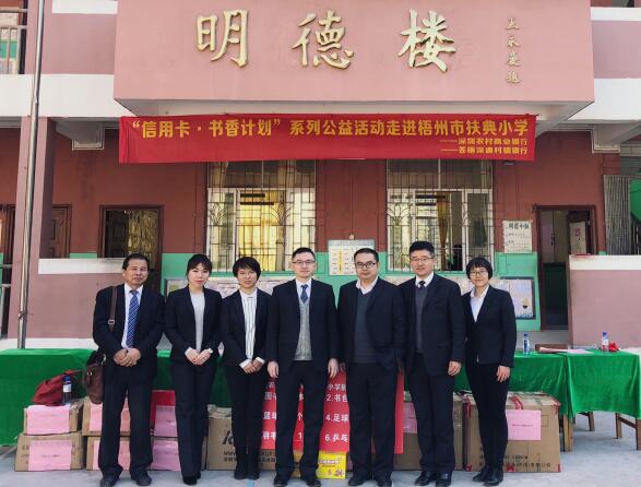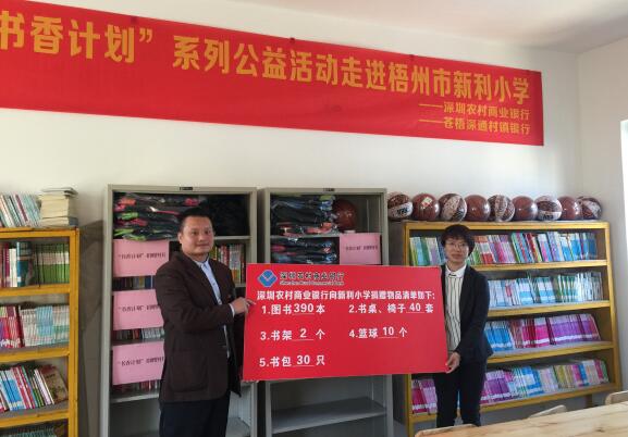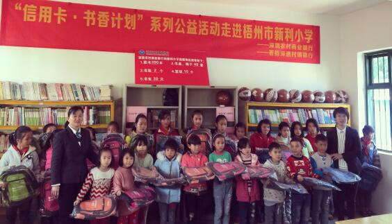 2017年,由深圳農(nóng)商行發(fā)起的“信用卡公益計(jì)劃·書香圖書室”捐贈(zèng)活動(dòng),深入走進(jìn)廣西壯族自治區(qū)的偏遠(yuǎn)山區(qū),為當(dāng)?shù)剌^為貧困的扶典小學(xué)、新利小學(xué)、林旺小學(xué)和育才小學(xué)帶來(lái)溫暖和鼓勵(lì)。本次活動(dòng)共捐贈(zèng)各類圖書1899冊(cè)、文體用品130套、書包590個(gè)、書桌書架椅子42套,有效地幫助這四所小學(xué)建設(shè)充實(shí)圖書室,為孩子們創(chuàng)造良好的閱讀環(huán)境,讓更多孩子在閱讀中滋養(yǎng)向上生長(zhǎng)的力量。
