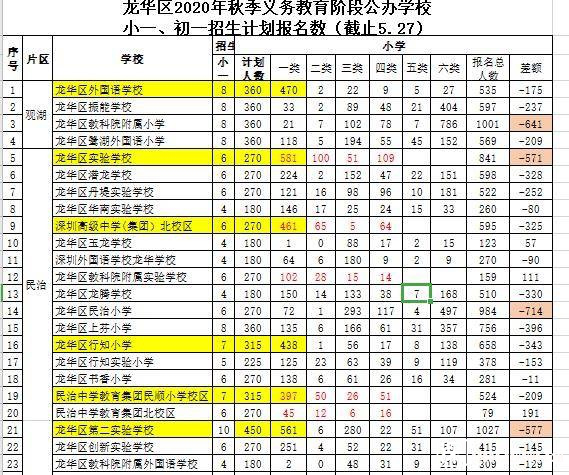 龍華區(qū)公辦學(xué)校小一、初一計(jì)劃報(bào)名數(shù)(市民供圖)