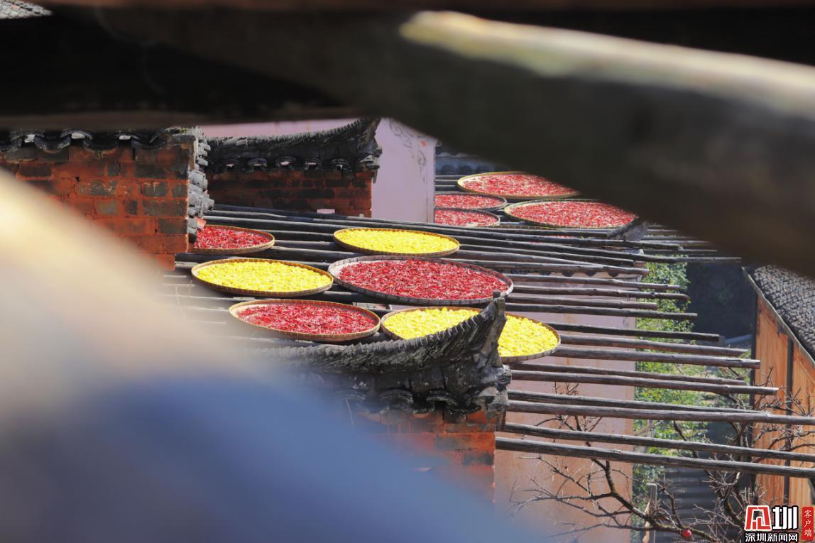 因地勢復(fù)雜,村莊平地少,只得利用房前屋后及自家窗臺(tái)、屋頂架曬、掛曬農(nóng)作物,久而久之就演變成一種傳統(tǒng)農(nóng)俗現(xiàn)象。
