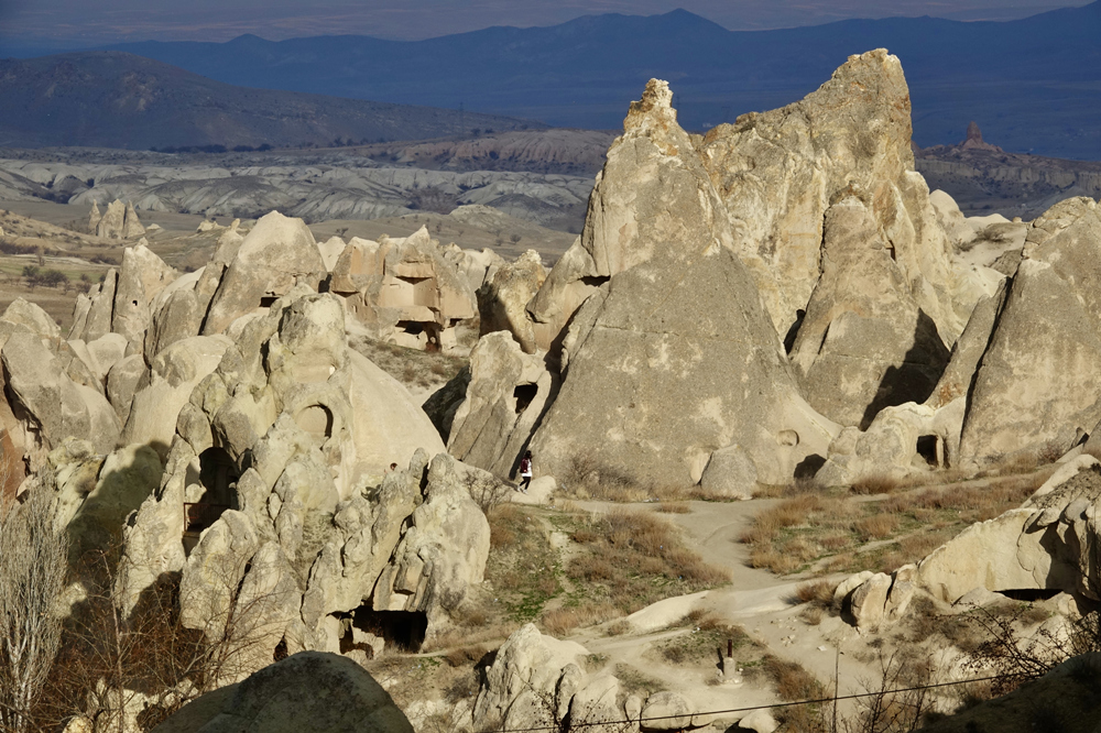 經(jīng)過(guò)十多個(gè)世紀(jì)的風(fēng)化和天然侵蝕,形成十分顯著的筍狀石柱和煙囪狀的石巖,環(huán)繞著古老的村莊和一系列的山脈,蔚為壯觀。李仁奇 攝