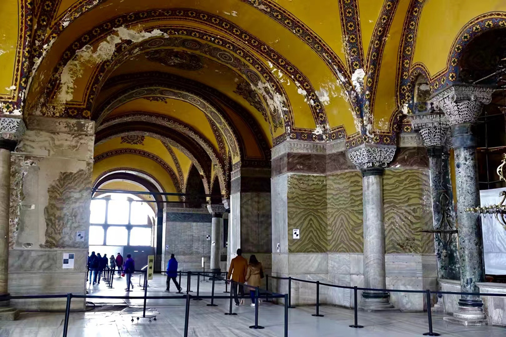 圣索菲亞大教堂內(nèi)部有140根巨大石柱,由于是從不同地方運(yùn)來(lái)的,因此石料色彩不一,有些是紫色,有些又是綠色。李仁奇 攝