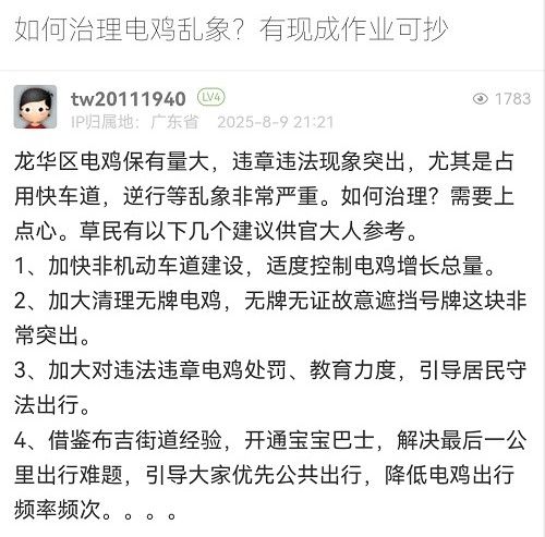 感謝您的反饋。龍華區(qū)作為深圳市的中軸新城,產(chǎn)業(yè)密集、人口居住集中,轄區(qū)電動自行車保有量同樣呈快速增長狀態(tài),目前龍華區(qū)的非機(jī)動車占全市總量約五分之一。一直以來,深圳市公安局交通管理局龍華大隊高度重視電動自行車安全管理工作,從通行管理、秩序整治、隱患治理、宣傳教育四大方面綜合施策,不斷優(yōu)化治理策略,切實(shí)提升電動自行車交通管理水平。您的建議我們也會向相關(guān)部門反饋,共同努力治理電動車。再次感謝您對交通管理工作的支持和理解!