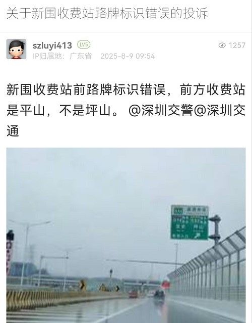26. 帖文《關(guān)于新圍收費(fèi)站路牌標(biāo)識錯誤的投訴》