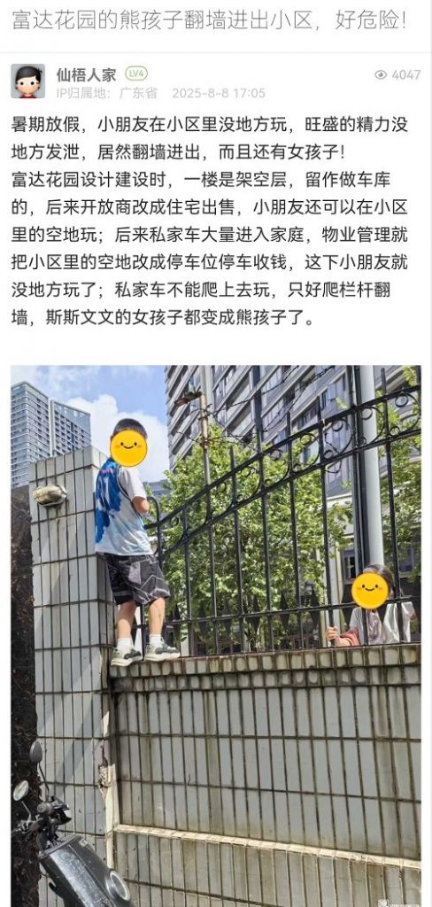 25. 帖文《富達(dá)花園的熊孩子翻墻進(jìn)出小區(qū),好危險!》